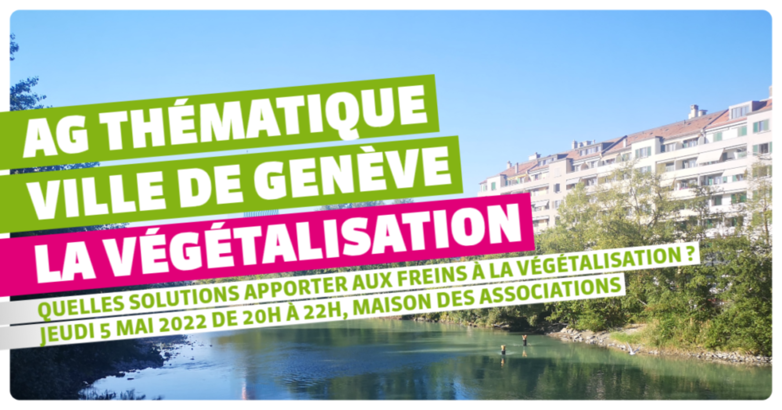 L’assemblée générale thématique aura lieu dès 20h, à la Maison des Associations (salle Carson). Durant celle-ci, nous vous proposons, en présence de nos magistrat-e-s, un éclairage scientifique sur la végétalisation. Nous évoquerons également les actions concrètes prises au niveau de la Ville de Genève avant de lancer une table ronde afin de réfléchir ensemble aux solutions possibles afin de contrer les freins à la végétalisation.