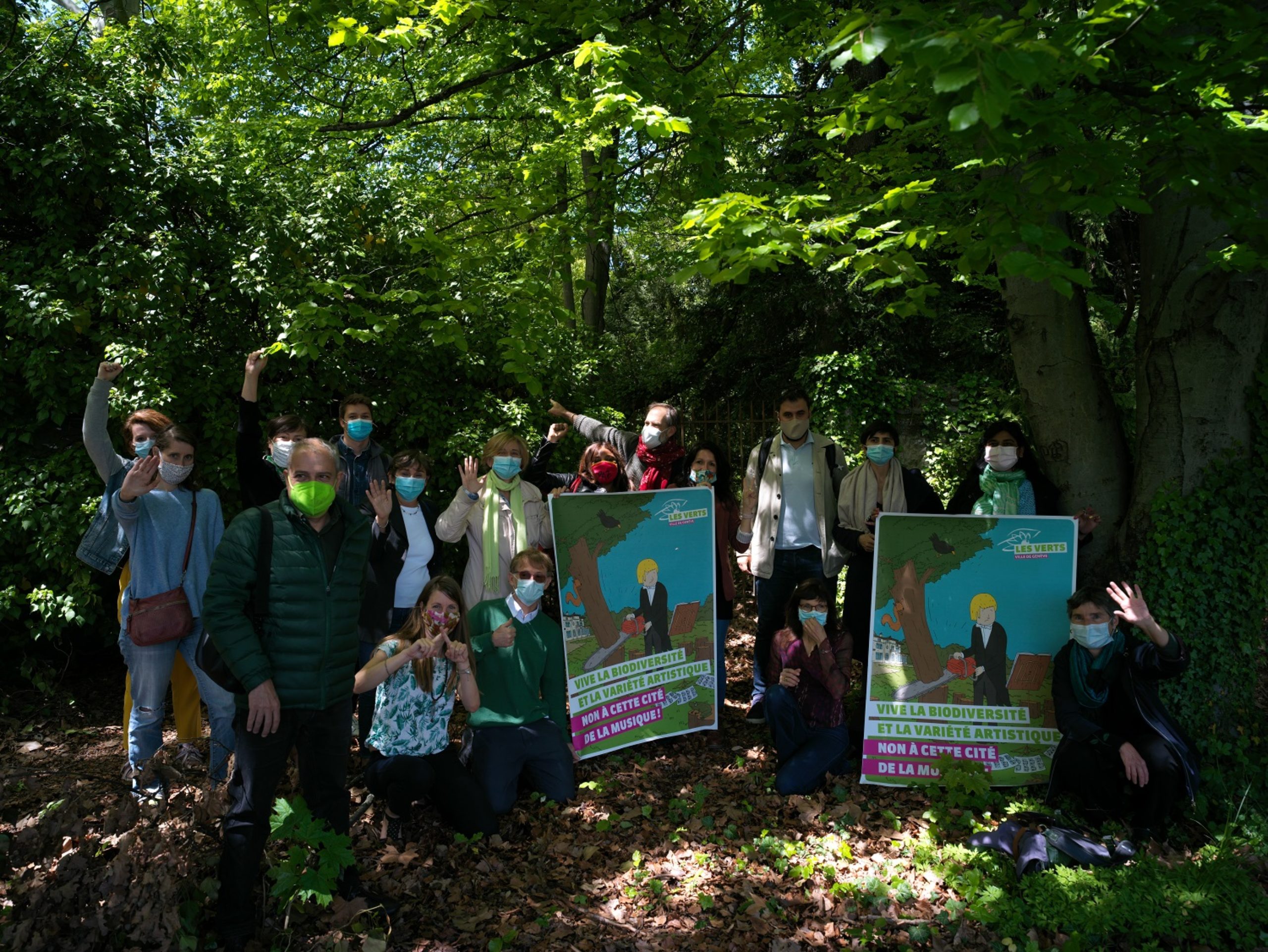 Non à cette Cité de la Musique! 🗳 ❌ Les élu·e·s Vert·e·s de la Ville de Genève réuni·e·s devant le site voué à disparaitre si la Cité de la musique était acceptée. Notre programme de législature vise notamment la végétalisation, la défense de la biodiversité et l’utilisation intelligente de l’espace urbain. Construire un bloc de béton sur une forêt ne fait pas partie de nos buts pas plus que d’une stratégie de lutte contre le changement climatique.