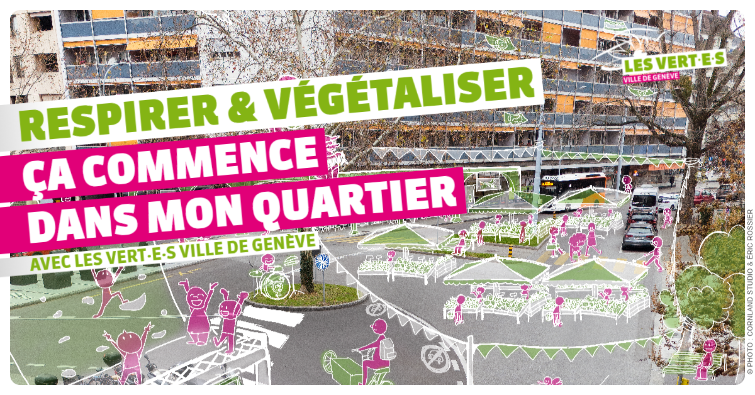 Les Vert-e-s de la Ville de Genève lancent officiellement leur campagne pour les élections municipales 2025. Fidèles à leur vision d’une ville durable et inclusive, les Vert-e-s mettent en avant des concepts porteurs : végétaliser la ville, encourager la solidarité, offrir aux habitant-e-s un environnement respirable et des services et commerces de proximité.